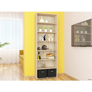 Система хранения в этой модели организована семью открытыми нишами, на которых свободно разместятся книги, декоративные элементы, кашпо с цветами и прочие важные мелочи.