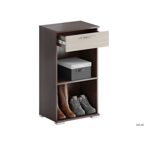 Обувница Юнона имеет вместительную, но компактную конструкцию, поэтому станет удачным дополнением даже самой маленькой прихожей. Две полочки для обуви дополнены выдвижным ящиком для мелочей и аксессуаров.