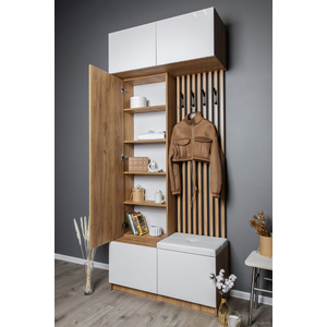 Прихожая Бостон, дуб крафт золотой/белый/белый кожзам