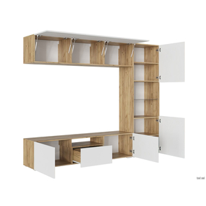 Гостиная Стенфорд — удобная система хранения с просторной нишей для монитора практически любой диагонали. На фасадах нет ручек: дверцы и ящик открываются с помощью специальных выступов. Такое решение делает мебель лаконичнее и отлично подходит для оформления комнаты, где на счету каждый сантиметр площади.