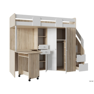 Кровать-чердак Мийа, дуб сонома/белый шагрень