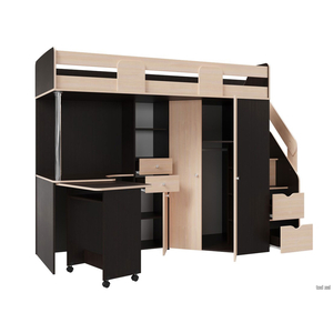 Кровать-чердак Мийа — мультифункциональная модель с акцентом на комфорт и безопасность ребенка. Выдвижная конструкция стола, ящики в ступенях лестницы и угловой шкаф позволяют максимально рационально задействовать пространство. В мебели практически нет...
