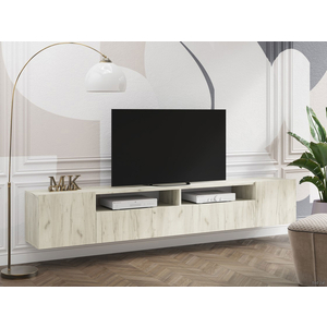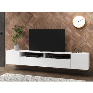 ТВ-тумба Соло — простая и вместе с тем очень функциональная модель для оформления просторной гостиной. Открытые полки для роутера, приставки и джойстика дополнены закрытыми секциями, где можно спрятать от пыли другие нужные вещи. На фасадах нет фурнитуры: все дверцы открываются с помощью специальных выступов.