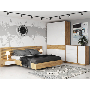Кровать с подъемным механизмом и тумбами Бостон 160х200, дуб крафт золотой/белый глянец