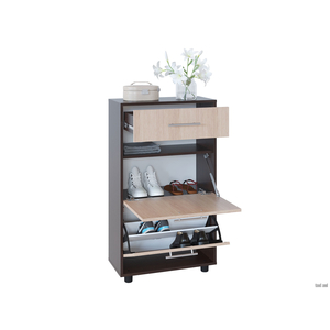 Обувница Моренго 2 объединила в себе два закрытых отделения и выдвижной ящик. Нижний отсек оснащен откидным механизмом со специальными полками для удобного хранения обуви.