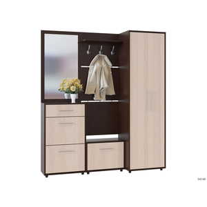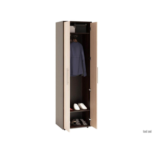 Распашной шкаф Моренго с двумя дверями. Внутреннее наполнение представлено антресольной и нижней полками, а также выдвижной вешалкой для плечиков. \n\nХарактеристики:\n \nМатериал: ЛДСП 16 мм, кромка ПВХ 0,4 мм. \nМатериал ручек: ме...