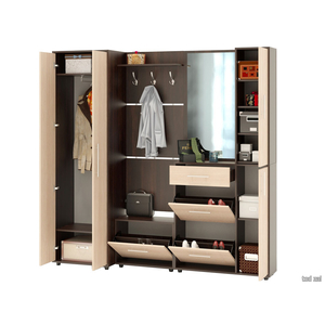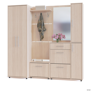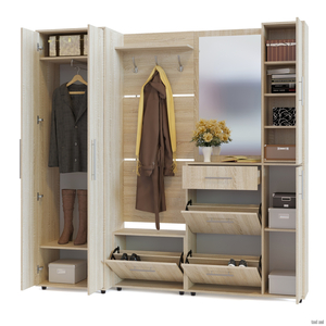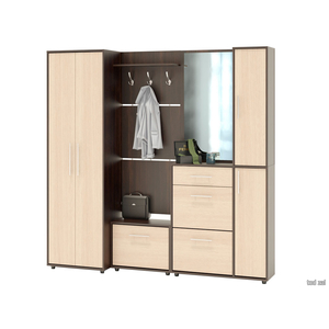 Модуль с зеркалом универсален, шкафчик может располагаться как с правой, так и с левой стороны. Все компоненты прихожей независимы друг от друга и могут быть расположены в любом порядке.