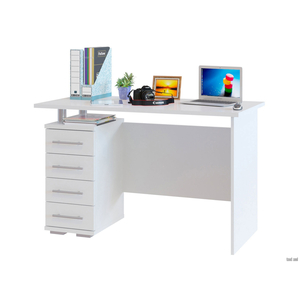 Удобный большой письменный стол Кери со встроенной вместительной тумбой — это строгие и лаконичные формы, которые будут прекрасно смотреться в современном интерьере. Тумба имеет 4 ящика и нишу сверху. Модель универсальна по функционалу и может быть использована и как письменный, и как компьютерный стол.