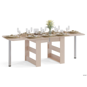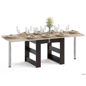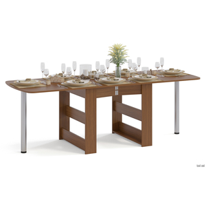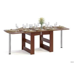 Стол-книжка для любителей устраивать пышные застолья. Уникальность стола заключается в том, что он имеет три варианта размера: \n \nСложенный стол – размер 74 х 31,4 х 83 см – может использоваться как пристенный столик; \nНа половину разлож...