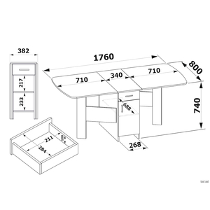 В собранном виде может использоваться в качестве тумбы (ширина всего 38,2 см). А при необходимости модель превращается в полноценный обеденный стол шириной 176 см.