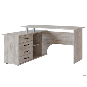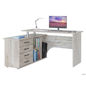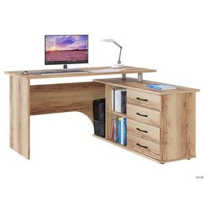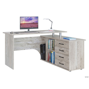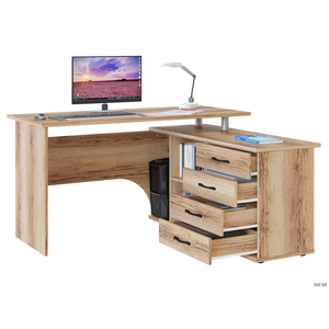 Угловой компьютерный стол Порту с двумя рабочими поверхностями для организации рабочей зоны дома и в офисе. Основная столешница имеет ширину позволяющую разместить компьютер и рабочие материалы. На малой столешнице удобно держать под рукой книги, папки, канцелярию. Стол оборудован тумбой с четырьмя ящиками на роликовых направляющих, открытыми полками и нишей под системный блок. Такая модель компьютерного стола позволяет организовать функциональную рабочую зону как в домашнем кабинете, так и в офисе.
