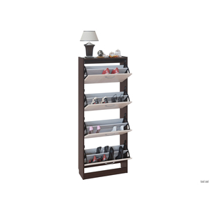 Высокая и компактная обувница Моренго 7 в классическом исполнении. Модель имеет четыре отделения по две полки в каждом и вмещает в себя примерно двенадцать пар невысокой обуви на плоской подошве. Удобно и практично. Благодаря маленькой глубине — всего 22 см, обувница не будет занимать много места.