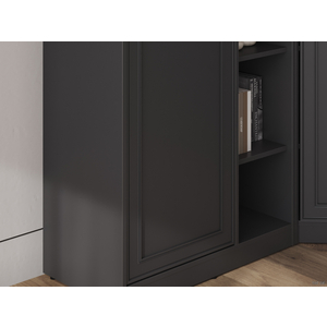 Угловая гостиная Люси объединила всё необходимое для практичного хранения домашней библиотеки. Мебель позволяет продемонстрировать содержимое на открытых полках и скрыть вещи за глухими фасадами. На антресоли можно убрать то, что требуется редко. Строгие рамки и лаконичные ручки-кнопки привлекательно смотрятся в разных интерьерах.