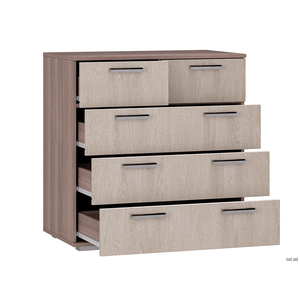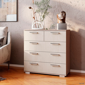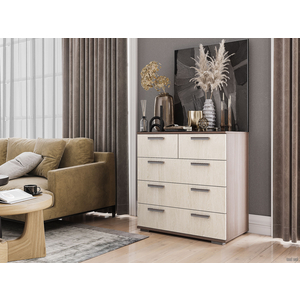 Комод Стандарт 5 имеет два малых ящика наверху для белья и аксессуаров и три больших, где будет удобно хранить одежду и вещи. Модель будет полезной частью интерьера прихожей, спальни, гостиной или детской комнаты. Широкая столешница позволяет поставить небольшой плоский телевизор или использовать ее для необходимых под рукой мелочей.