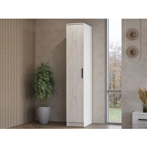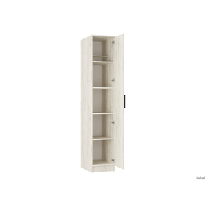 Распашной шкаф Фиеста 1 дверь — отличное решение для хранения одежды и постельных принадлежностей. Благодаря своим компактным размерам, модель не займет много места в спальне или гостиной. При необходимости высоту полок можно регулировать. Гладкий фасад под дерево дополнен контрастной ручкой, что создает небольшие стильные акценты интерьера.