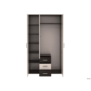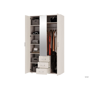 Распашной шкаф Белла — практичное украшение современной спальни, гостиной или квартиры-студии. Внутри шкафа есть вместительная секция со штангой для вешалок. В правой части поместятся даже длинные платья и зимняя одежда. Для хранения мелких вещей и текстиля шкаф дополнен тремя выдвижными ящиками. А постельное белье и одежду удобно хранить в секции-пенале с глубокими нишами.