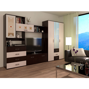 Шкаф 2-х створчатый с зеркалом Белла, венге/дуб атланта