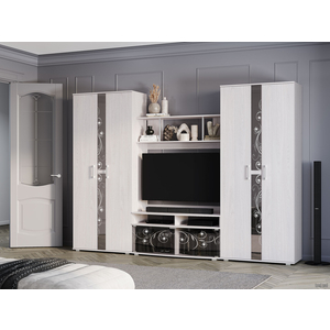 Яркая и необычная гостиная Флоренция 2 шкафа с декоративными стеклянными фасадами и вставками. Дверцы украшены витиеватым рисунком с пескоструйной обработкой и стразами Swarovski. Длинные ручки удобны в использовании, при этом не отвлекают внимания от основного декора. В каждом платяном шкафу имеются отделение со штангой для вешалок и много полок. Вместительная и функциональная гостиная будет особенно полезна в небольшой квартире.