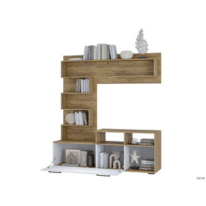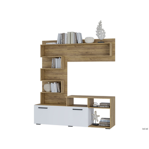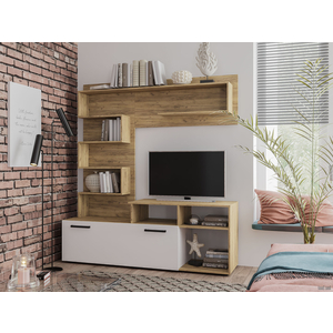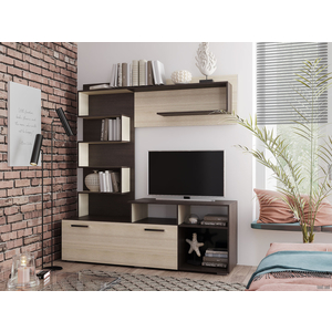 Гостиная Евро — отличное решение для организации уютной зоны для просмотра фильмов в небольшой квартире. Модель обладает несколькими функциональными зонами, которые украсят интерьер и помогут поддерживать порядок в мелочах. Интересный стеллаж-змейка удачно разместит множество книг или декоративных элементов, открытые полки и ниши подойдут для установки техники, а закрытый шкафчик будет идеальным для хранения вещей, которым нежелательно воздействие света.