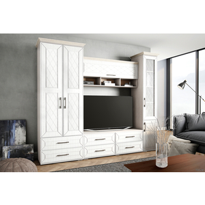 Распашной шкаф Флоренция — элегантное дополнение интерьера гостиной. Фасад декорирован стеклянной вставкой с изящным витиеватым рисунком, нанесенным пескоструйным методом. Внутри имеется отделение с выдвижной штангой для вешалок, антресольной полкой и ...