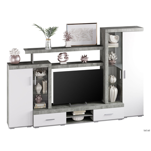 Гостиная Инстайл — это неординарный дизайн и функциональность, благодаря которым можно создать уникальный интерьер с продуманной системой хранения. Аскетичную фактуру бетона гармонично уравновешивают глянцевые фасады. Регулируемые опоры позволяют установить стенку даже на неровной поверхности.