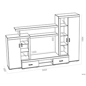 Размер ниши для ТВ (ВхШ): 900 х 1200 мм.