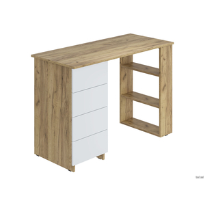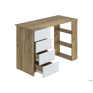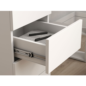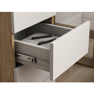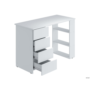 Письменный стол Юта в лаконичном современном дизайне поможет обустроить комфортную рабочую или учебную зону. Тумба с выдвижными ящиками и полки под столешницей позволят хранить в быстром доступе необходимые канцелярские принадлежности, литературу и документы формата А4. Ящики обладают плавным бесшумным ходом и открываются за выступающие края фасадов.