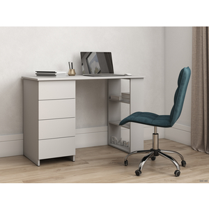 Письменный стол Юта в лаконичном современном дизайне поможет обустроить комфортную рабочую или учебную зону. Тумба с выдвижными ящиками и полки под столешницей позволят хранить в быстром доступе необходимые канцелярские принадлежности, литературу и док...