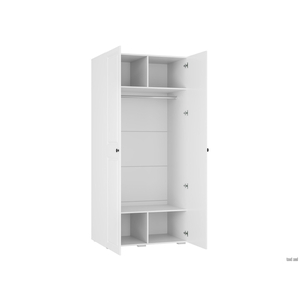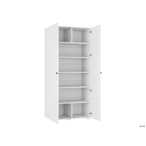Распашной шкаф Северина подходит для хранения предметов гардероба, домашнего текстиля и других нужных вещей. Модель достаточно глубокая, поэтому внутри найдется место для теплых одеял или чемодана. Фасады декорированы элегантной фрезеровкой и миниатюрными руками-кнопками.