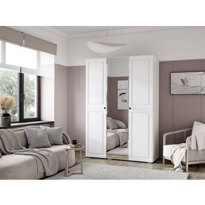 Распашной шкаф Северина — практичное решение для размещения любых предметов гардероба. На полках можно хранить вещи в сложенном виде и домашний текстиль, а в нише — развесить одежду из деликатных тканей. Зеркальное полотно позволяет рассмотреть свое отражение в полный рост, что очень удобно во время переодевания.