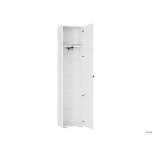 Распашной шкаф Северина организует хранение необходимых вещей без лишних затрат пространства. Дверца декорирована элегантной фрезеровкой и дополнена миниатюрной ручкой-кнопкой. Такой дизайн смотрится очень актуально и эстетично.