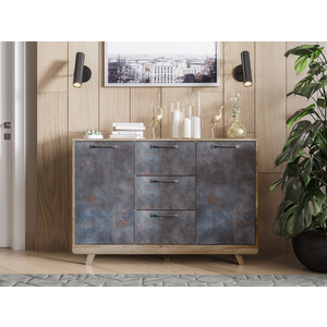 Комод Мегаполис КМ-15, дуб каньон/серый фрезеровка