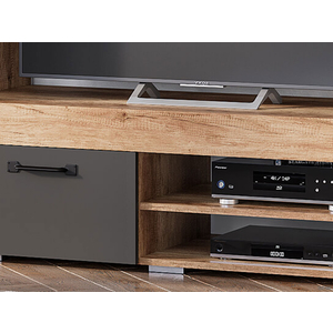 ТВ-тумба Прима — идеальное решение для размещения телевизора и другой мультимедийной техники. Напольный ящик удобен для хранения важных мелочей. Открытые ниши подходят для печатной продукции, предметов декора и пульта.