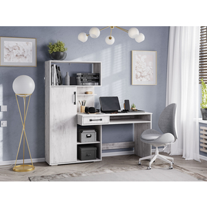 Письменный стол Прима — незаменимый элемент интерьера личного кабинета, детской комнаты или офиса. На столешнице можно разместить ноутбук, планшет и необходимые гаджеты. Выдвижной ящик удобен для хранения важных мелочей. Стеллаж идеально подойдет для книг и учебников. Продуманная конфигурация позволяет держать под рукой всё необходимое для работы и учебы.