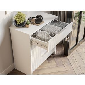 Комод Лиссабон станет стильным акцентом современного интерьера. Эстетичные фасады с вертикальной фрезеровкой и лаконичной фурнитурой создают привлекательный образ. Выдвижные ящики помогают упорядочить хранение вещей. Небольшая глубина позволяет установить модель в ограниченном пространстве.