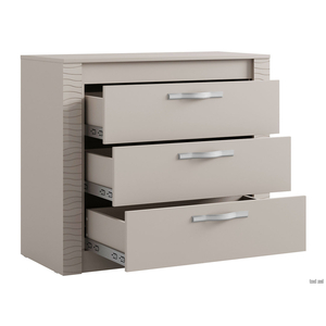 Комод Далия поможет организовать упорядоченное хранение одежды и белья. Выдвижные ящики плавно и бесшумно открываются, обеспечивая доступ к содержимому. Декоративные элементы разбавляют сдержанный дизайн модели, создавая стильные акценты интерьера.