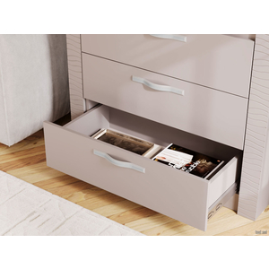 Комод Далия поможет организовать упорядоченное хранение одежды и белья. Выдвижные ящики плавно и бесшумно открываются, обеспечивая доступ к содержимому. Декоративные элементы разбавляют сдержанный дизайн модели, создавая стильные акценты интерьера. ...