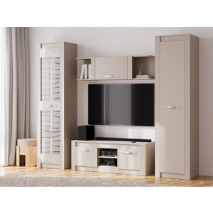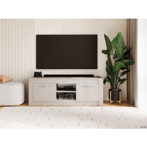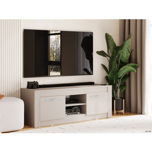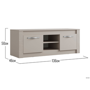 ТВ-тумба Далия — практичная модель для меблировки гостиной или спальни. В отделениях за распашными дверцами и открытой нише достаточно места для мультимедийной техники, дисков и различных гаджетов. Фрезеровка по бокам добавляет стильные акценты интерьеру комнаты.