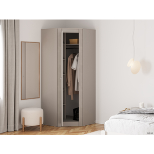 Угловой шкаф Далия обеспечит грамотное хранение разных категорий вещей. Вместительное пространство включает отделение со штангой для одежды любой длины, ряд полок для свитеров, футболок и джинсов, а также антресольную нишу, где можно расположить коробки. Привлекательный дизайн с лаконичной фрезеровкой по бокам гармонично смотрится в современном интерьере.