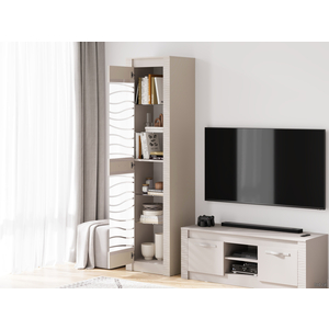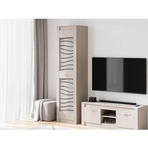 Гостиная Далия Мини — стильный способ обустроить пространство самой большой комнаты в доме. Аккуратные элементы создают симметрию в интерьере и позволяют разместить как личные предметы обихода, так и коллекционные вещи. Волнообразная фрезеровка на фасадах и матовое стекло витрины гармонично сочетаются между собой и подчеркивают индивидуальность меблировки.