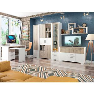 Комод Оксфорд 3 ящ 2 дв, дуб санремо/белый