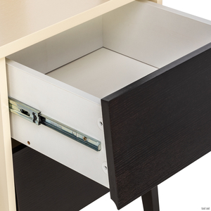 - Оригинальная дизайнерская идея нашла отражение в надежном функционале стильной этажерки с выдвижными ящиками. Классическая цветовая гамма представлена ненавязчивыми расцветками. Натуральный шпон ясеня мягко обрамляет перегородки и полки, на которых книги, ценные вещи или вазоны с цветами смотрятся визуально притягательно.