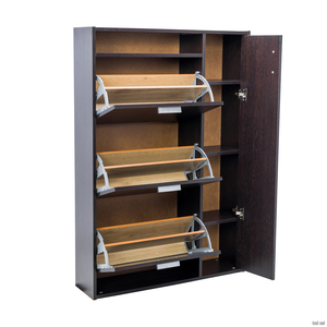 - Много обуви и всегда не знаете куда ее спрятать?! Обувница решит эту проблему. Эта модель оснащена тремя отделениями для хранения обуви. Очень скромные габариты изделия, при этом вместимость обувницы - более 10 пар. Дополнительное место для хранения мелочей и аксессуаров для ухода за обувью.