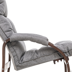 • Мягкое кресло для отдыха дома и на даче Левада сделает комфортным интерьер комнаты модерн или хай-тек. Стильные кресла трансформеры из гнутоклееной коллекции мягкой мебели Leset имеют характерный силуэт, функциональны и компактны, поэтому популярны. Кресло-стул с подлокотниками и уютным сиденьем уместно в спальне, гостиной, прихожей, на балконе, в закрытой дачной беседке. У основания кресло раскладное оснащено механизмом гребенка, за счет чего одним движением спинка переключается в 4 положения. Этим модель напоминает шезлонг, но Левада Leset -полноценное интерьерное кресло для отдыха: современный дизайн, изящный деревянный каркас под итальянским лаком, велюровый чехол, наполнитель из эластичного пенополиуретана. Накладки на подлокотниках снимаются для чистки, приспинная подушка декорирована пуговицами. Эргономичное каркасное кресло раскладушка выдержит до 120 кг. Регулируемое кресло позволит расслабиться как на диване, это чудесный подарок в новую квартиру друзьям.
