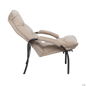 • Мягкое кресло для отдыха дома и на даче Левада сделает комфортным интерьер комнаты модерн или хай-тек. Стильные кресла трансформеры из гнутоклееной коллекции мягкой мебели Leset имеют характерный силуэт, функциональны и компактны, поэтому популярны. Кресло-стул с подлокотниками и уютным сиденьем уместно в спальне, гостиной, прихожей, на балконе, в закрытой дачной беседке. У основания кресло раскладное оснащено механизмом гребенка, за счет чего одним движением спинка переключается в 4 положения. Этим модель напоминает шезлонг, но Левада Leset -полноценное интерьерное кресло для отдыха: современный дизайн, изящный деревянный каркас под итальянским лаком, велюровый чехол, наполнитель из эластичного пенополиуретана. Накладки на подлокотниках снимаются для чистки, приспинная подушка декорирована пуговицами. Эргономичное каркасное кресло раскладушка выдержит до 120 кг. Регулируемое кресло позволит расслабиться как на диване, это чудесный подарок в новую квартиру друзьям.