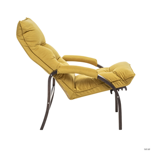 • Мягкое кресло для отдыха дома и на даче Левада сделает комфортным интерьер комнаты модерн или хай-тек. Стильные кресла трансформеры из гнутоклееной коллекции мягкой мебели Leset имеют характерный силуэт, функциональны и компактны, поэтому популярны. Кресло-стул с подлокотниками и уютным сиденьем уместно в спальне, гостиной, прихожей, на балконе, в закрытой дачной беседке. У основания кресло раскладное оснащено механизмом гребенка, за счет чего одним движением спинка переключается в 4 положения. Этим модель напоминает шезлонг, но Левада Leset -полноценное интерьерное кресло для отдыха: современный дизайн, изящный деревянный каркас под итальянским лаком, велюровый чехол, наполнитель из эластичного пенополиуретана. Накладки на подлокотниках снимаются для чистки, приспинная подушка декорирована пуговицами. Эргономичное каркасное кресло раскладушка выдержит до 120 кг. Регулируемое кресло позволит расслабиться как на диване, это чудесный подарок в новую квартиру друзьям.