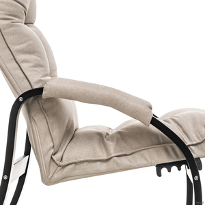 • Мягкое кресло для отдыха дома и на даче Левада сделает комфортным интерьер комнаты модерн или хай-тек. Стильные кресла трансформеры из гнутоклееной коллекции мягкой мебели Leset имеют характерный силуэт, функциональны и компактны, поэтому популярны. Кресло-стул с подлокотниками и уютным сиденьем уместно в спальне, гостиной, прихожей, на балконе, в закрытой дачной беседке. У основания кресло раскладное оснащено механизмом гребенка, за счет чего одним движением спинка переключается в 4 положения. Этим модель напоминает шезлонг, но Левада Leset -полноценное интерьерное кресло для отдыха: современный дизайн, изящный деревянный каркас под итальянским лаком, велюровый чехол, наполнитель из эластичного пенополиуретана. Накладки на подлокотниках снимаются для чистки, приспинная подушка декорирована пуговицами. Эргономичное каркасное кресло раскладушка выдержит до 120 кг. Регулируемое кресло позволит расслабиться как на диване, это чудесный подарок в новую квартиру друзьям.