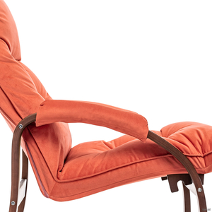 • Мягкое кресло для отдыха дома и на даче Левада сделает комфортным интерьер комнаты модерн или хай-тек. Стильные кресла трансформеры из гнутоклееной коллекции мягкой мебели Leset имеют характерный силуэт, функциональны и компактны, поэтому популярны. Кресло-стул с подлокотниками и уютным сиденьем уместно в спальне, гостиной, прихожей, на балконе, в закрытой дачной беседке. У основания кресло раскладное оснащено механизмом гребенка, за счет чего одним движением спинка переключается в 4 положения. Этим модель напоминает шезлонг, но Левада Leset -полноценное интерьерное кресло для отдыха: современный дизайн, изящный деревянный каркас под итальянским лаком, велюровый чехол, наполнитель из эластичного пенополиуретана. Накладки на подлокотниках снимаются для чистки, приспинная подушка декорирована пуговицами. Эргономичное каркасное кресло раскладушка выдержит до 120 кг. Регулируемое кресло позволит расслабиться как на диване, это чудесный подарок в новую квартиру друзьям.