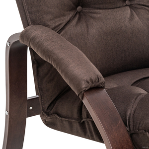 • Мягкое кресло для отдыха дома и на даче Левада сделает комфортным интерьер комнаты модерн или хай-тек. Стильные кресла трансформеры из гнутоклееной коллекции мягкой мебели Leset имеют характерный силуэт, функциональны и компактны, поэтому популярны. Кресло-стул с подлокотниками и уютным сиденьем уместно в спальне, гостиной, прихожей, на балконе, в закрытой дачной беседке. У основания кресло раскладное оснащено механизмом гребенка, за счет чего одним движением спинка переключается в 4 положения. Этим модель напоминает шезлонг, но Левада Leset -полноценное интерьерное кресло для отдыха: современный дизайн, изящный деревянный каркас под итальянским лаком, велюровый чехол, наполнитель из эластичного пенополиуретана. Накладки на подлокотниках снимаются для чистки, приспинная подушка декорирована пуговицами. Эргономичное каркасное кресло раскладушка выдержит до 120 кг. Регулируемое кресло позволит расслабиться как на диване, это чудесный подарок в новую квартиру друзьям.