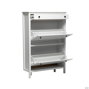 - Для хранения обуви и других аксессуаров в условиях ограниченного пространства идеально подойдёт галошница-тумба для обуви Leset «Токе». Благодаря продуманной эргономике, обувница при минимальной глубине в 30 см вмещает более четырёх пар обуви на ящик. Этот предмет интерьера станет незаменимым в гардеробной, бане или на даче. Его можно использовать как тумбу для обуви или комод. Этажерка для обуви выполнена в сдержанном скандинавском стиле. Акцент сделан на ненавязчивом декоре из круглых металлических ручек, который поддерживает стилистику модели. Тумба доступна в двух универсальных цветах — белом и чёрном, что позволяет легко вписать её в любой интерьер. При изготовлении тумбы для обуви Leset «Токе» использовался экологически чистый, практичный и долговечный материал — МДФ с красивой текстурой дерева. Для устойчивости и надёжности конструкции предусмотрены высокие ножки (11 см) в два ряда, которые также облегчают уборку пылесосом.